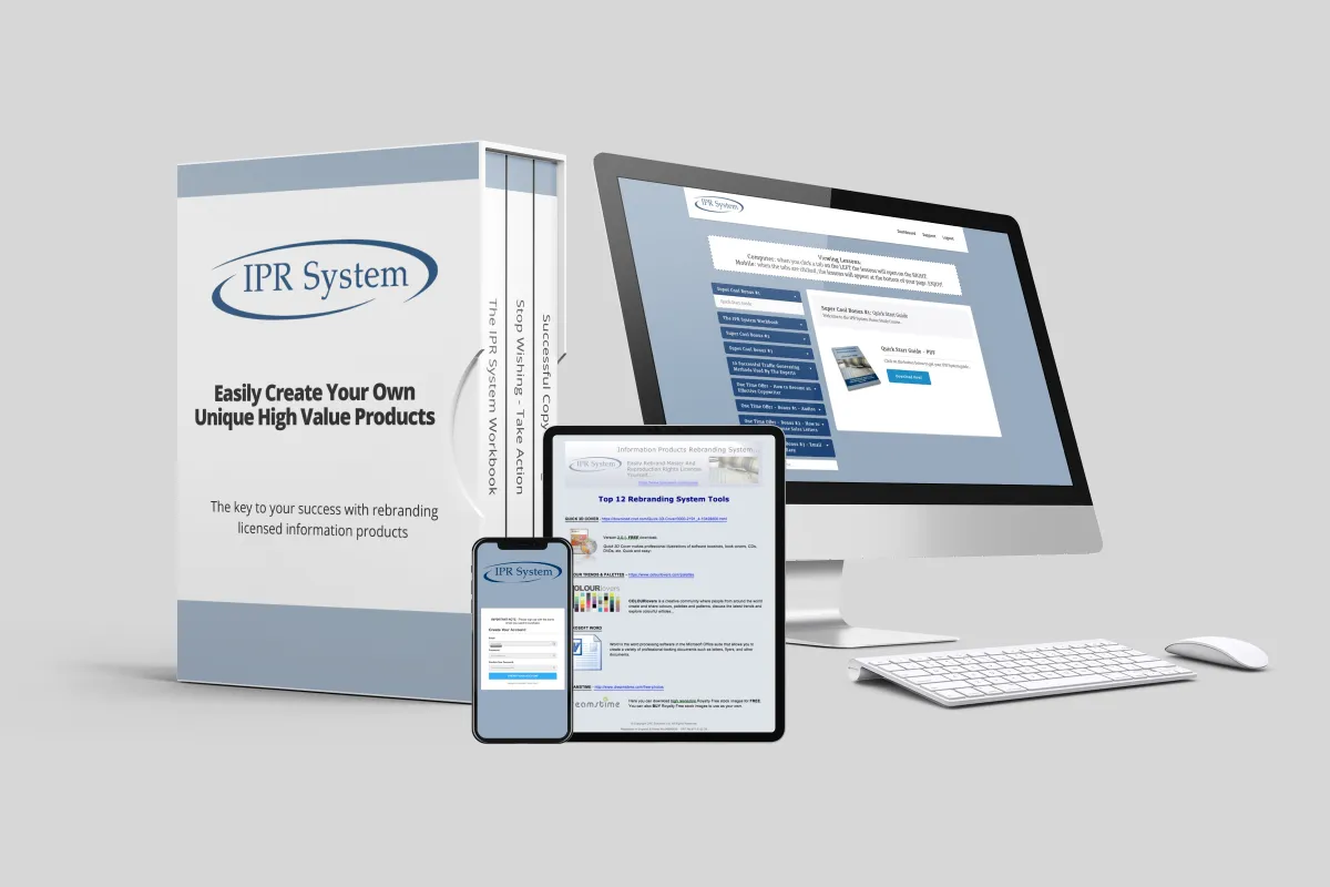 In fact, The IPR System also gives you advice on what FREE software you can use, what websites to visit and what inexpensive equipment you can use, all shown step-by-step so that you can work at your own pace.