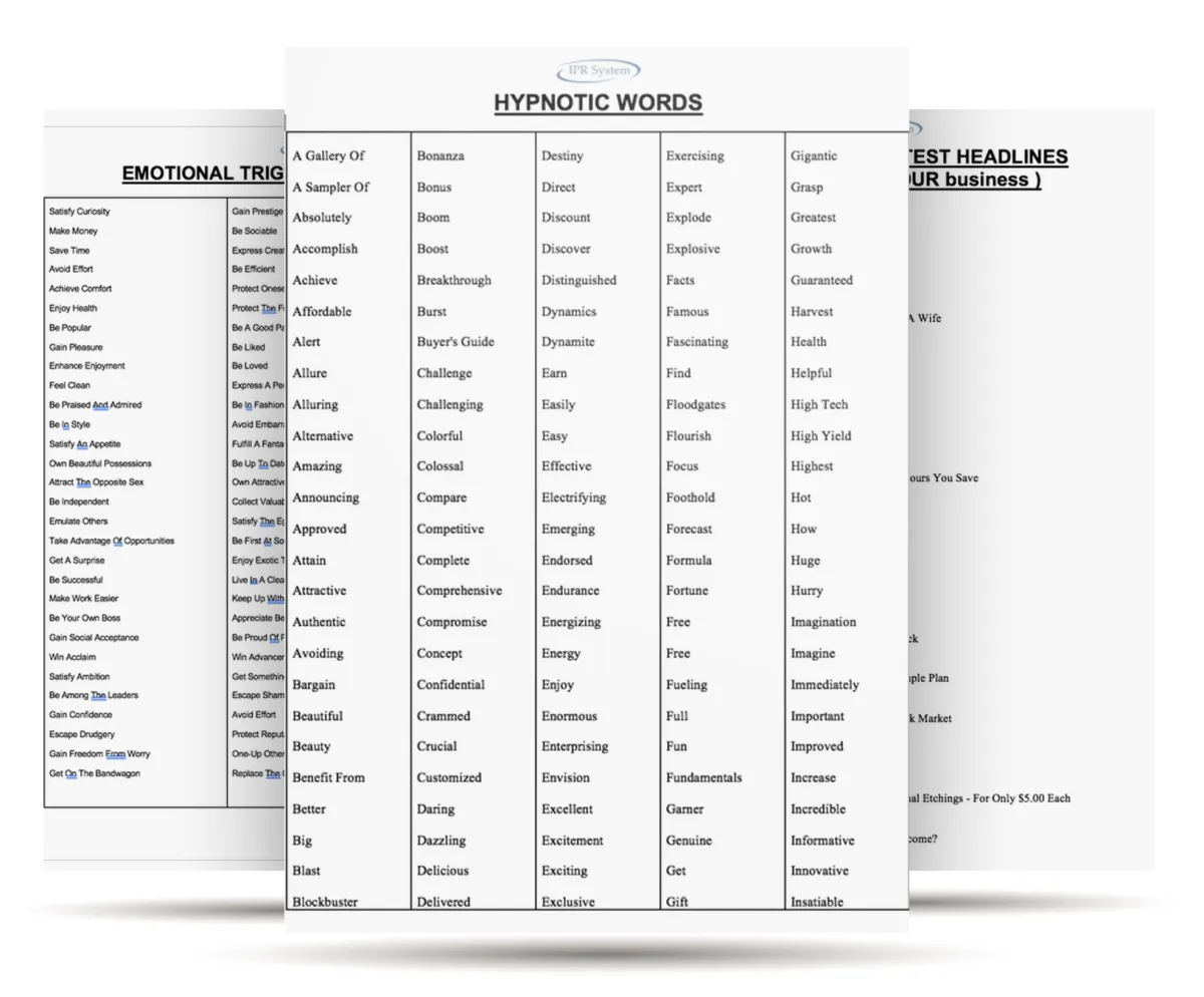 You will get a list of the 277 most Powerful and Proven words and phrases that you can use for your headlines and sales letters.